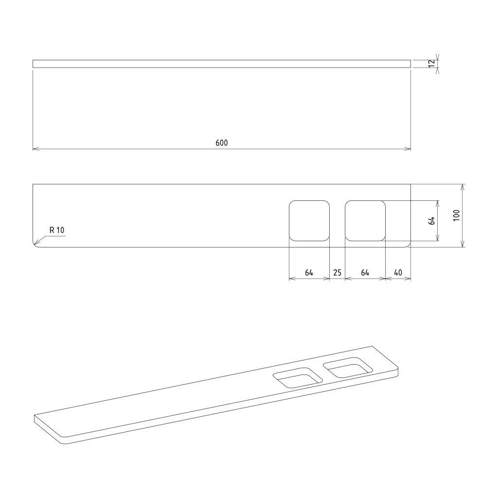ABELINE rockstone polc, 2 furattal, 1 pohárral, 1 szappanadagolóval, 600x12x100mm, matt fehér (AE602-0101-02)