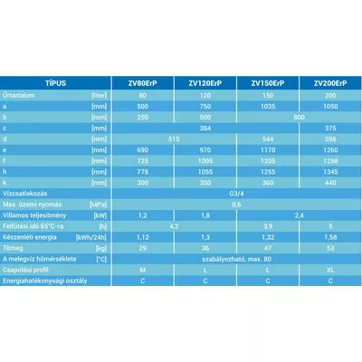 űrtartalom: 80, 120, 150, 200 liter