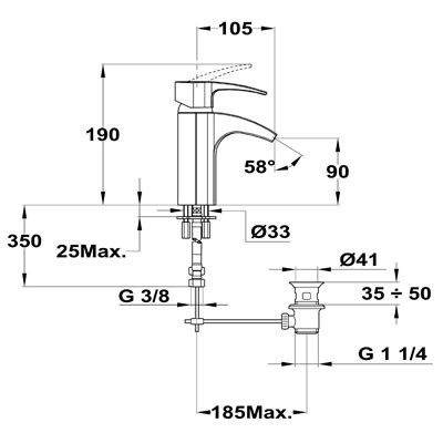 Elegáns, kecses fogantyúval, rendkívül szép formatervezésű csaptelep család. Teka Vita egykaros mosdó csaptelep Cascade kifolyóval automata leeresztővel króm színben. Jellemzők: fém leeresztő szeleppel, Cascade kifolyócső, vízkőmentes sugárvezető, 35 mm kerámia vezérlőegység, 3/8” flexibilis bekötőcső.