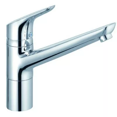 Klasszikus formák szelídebb ívekkel, hosszú élettartam, remek választás. Kludi Objekta bajonettzáras egykaros mosogató csaptelep króm felület. Jellemzők: egykaros, bajonettzáras mosogatócsap, teli fogantyú, egylyukas szerelési mód, kerámia vezérlőegység állítható hőfokkorlátozóval, vízsugárszabályzó M 24 x 1, névleges vízmennyiség 13,3 l/perc 3 bar nyomáson, elfordítható kifolyó (360°), ablak alá szerelhető, kiemelhető kivitel maradó talpmagasság: 25 mm, talpas kivitel, flexibilis csatlakozás G 3/8.