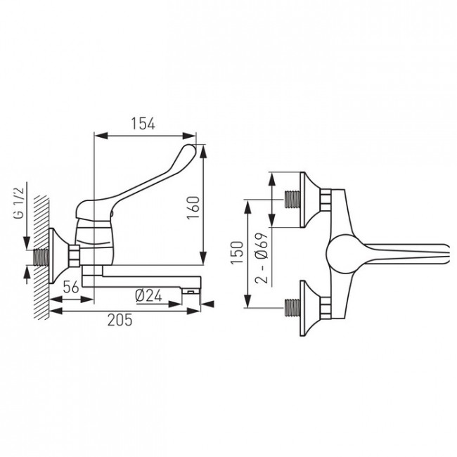 Ferro Vasto Medico fali orvosi mosdó csaptelep (BVAM3)