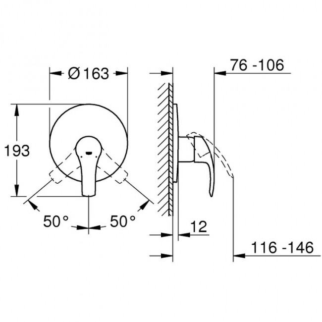 Grohe Eurosmart süllyesztett zuhany csaptelep, belső egység nélkül, króm felület, 163 mm