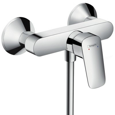 Hansgrohe Logis egykaros zuhanycsaptelep króm, falsíkon kívüli szereléshez. Jellemzők: zajcsillapítás S csatlakozókkal, kiállások közötti távolság 150±12 mm, átfolyási mennyiség 22 l/perc, kerámiabetét, állítható hőfokkorlátozó, visszafolyásgátló szelep, DN15. Gégecső nélkül, amit külön szükséges megrendelni.