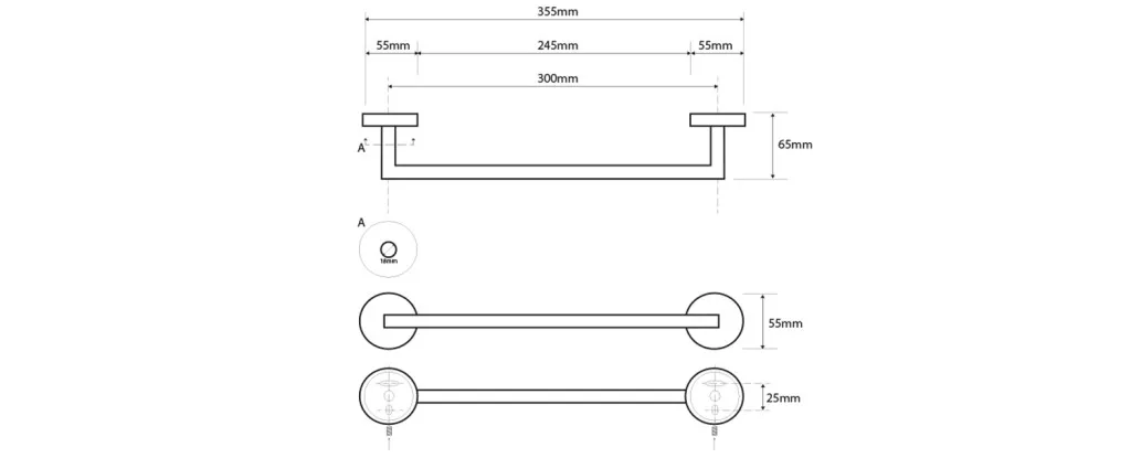BEMETA NEO Törölközőtartó, 355x55x65mm, inox/matt (104204015) (XS400)