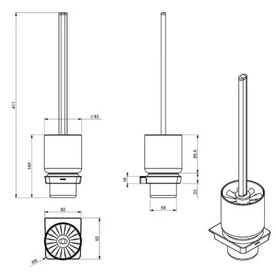 Sapho Zen fali WC kefe tejüveg króm 161041 műszaki rajz
