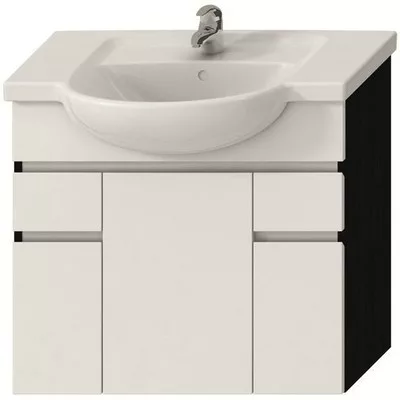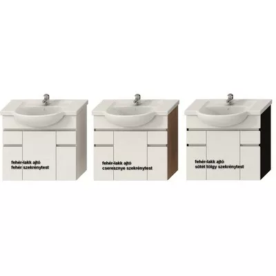A termék egyedi rendelésű termék, egyedi szerződés keretein belül tudja megvásárolni tőlünk!--A Jika fürdőszobaszekrényei masszív mégis elegáns geometriával emelik a fürdőszoba szépségét. Jika Lyra alsószekrény 80 cm-es mosdókhoz, 3 ajtóval, 2 fiókkal, fehér-lakk ajtó, sötét tölgy szekrénytest, vízálló ABS. Méret: 770x696x315 mm. A magasfényű fehér-lakk ajtók kombinálhatók a sötét tölgy, cseresznye, vagy tiszta fehér szekrénytestekkel. A csaptelep, valamint a mosdó nem tartozék, azt külön szükséges megrendelni!