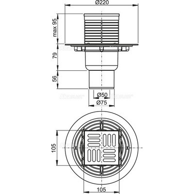 Alcaplast APV2311alsó kifolyású rozsdamentes padlólefolyó (APV2311)