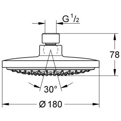 Jellemzői: egyféle vízsugár Rain, gömbcsukló +/- 15°-os állíthatósággal, GROHE EcoJoy® technológia a kevesebb vízfogyasztás érdekében, 9.4 l/perc átfolyási teljesítmény, csatlakozó menet 1/2", GROHE StarLight® króm felület, GROHE DreamSpray®, SpeedClean vízkőmentesíthető fúvókákkal, átfolyós vízmelegítővel is alkalmazható.