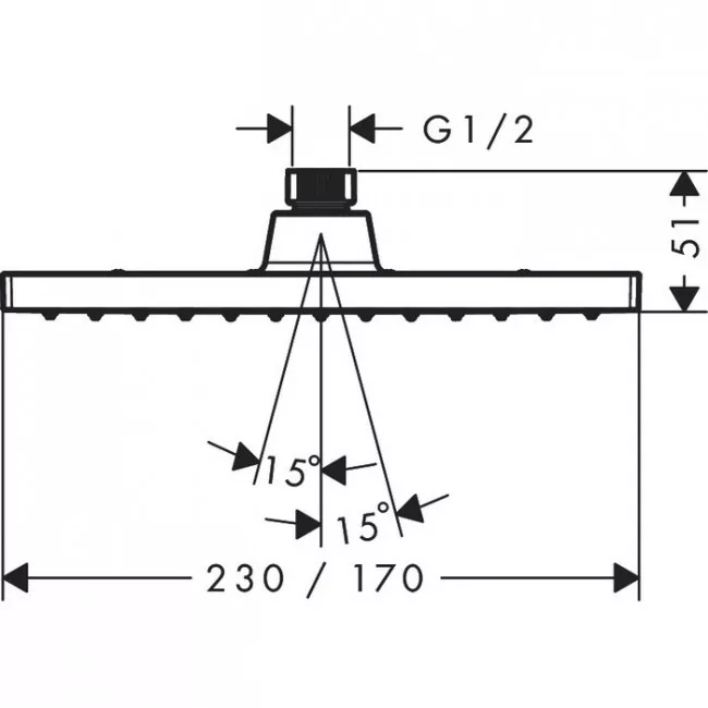 - zuhanyfej mérete: 230 x 170 mm